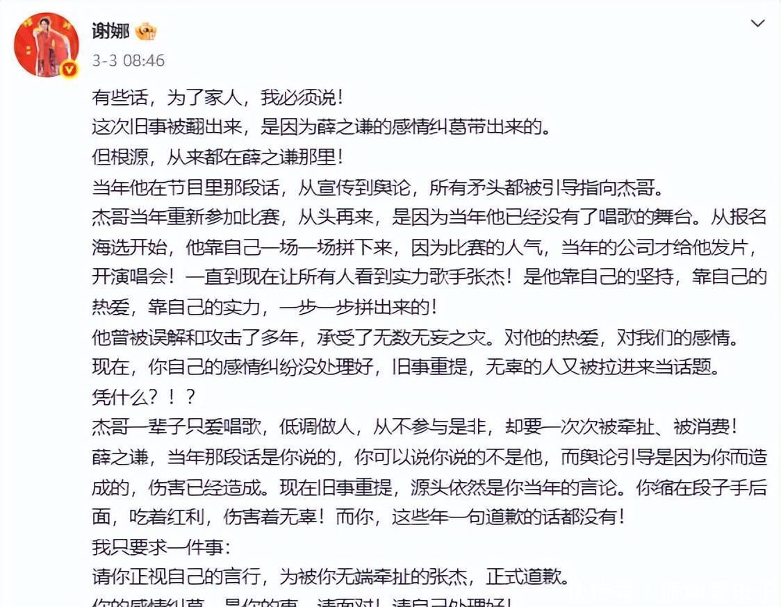 要知道,这事儿起因挺复杂。先是李雨桐爆料扯出陈年旧账,说薛之谦早年暗讽张杰“靠妻子上位”。谢娜护夫心切,3号直接发长文硬刚,要个正式道歉。结果呢,张杰前女友段曦突然杀出来翻旧账,舆论瞬间反转,搞得满天飞。张杰虽回应说问心无愧,可大伙都以为谢娜这下得愁坏了。